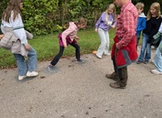 Bei tollem Wetter wurde gemeinsam gewandert, gespielt, gebastelt, geschmaust und zwischendurch auch gechillt. Der Höhepunkt des Trips waren sicherlich die vielfältigen teambildenden Einheiten mit den Erlebnispädagogen vom Therapiezentrum Larrieden und der Schulsozialarbeit. Als Grundkonzept dienten dabei die Zielvorgaben, wie Stärkung der Klassengemeinschaft, Kennenlernen der anderen, Vertrauensaufbau, Wir-Gefühl entwickeln. Daher wurden vor allem Interaktionen für das Kurzteamtraining gewählt, bei denen es darum geht, an „einem Strang zu ziehen“ und den Zusammenhalt spürbar erleben lassen. Unter Anleitung der professionellen Trainer machten die Kids bei abwechslungsreichen, kooperativen Spielformen wertvolle und nachhaltige Erfahrungen. Außerdem bastelten sich die jungen Gemeinschaftsschüler und -schülerinnen mittelalterliche Brettspiele und erkundeten das Stadtgebiet selbstständig in Kleindgruppen mittels einer Stadtrallye. Immer wieder galt es das Verhalten der Gruppe und seiner Mitglieder zu reflektieren.