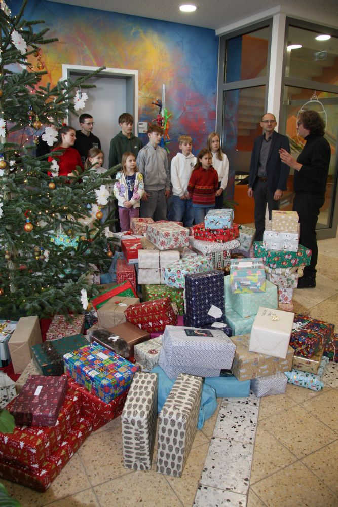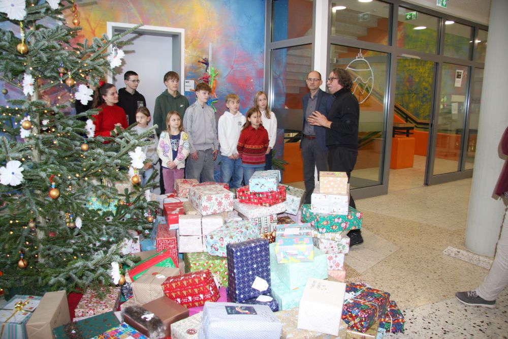 Am 17. Dezember war es soweit: Architekt Mathis Tröster, der langjährig die Modernisierungs- und Erweiterungsarbeiten an der Parkschule plant und begleitet, holte die 186 (!) Päckchen unter Weihnachtsbaum ab. Eltern, Schüler und Lehrer haben alle kräftig zu diesem Spendenerfolg beigetragen.