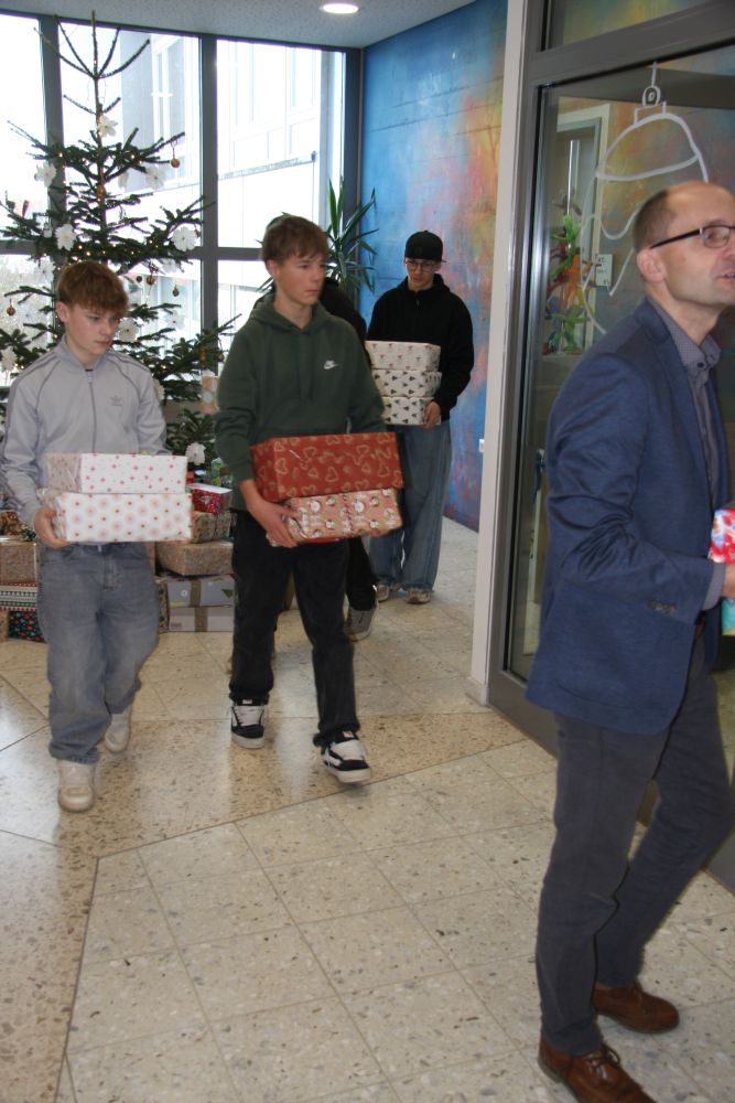 Die Päckchen werden in den Weihnachtsferien nach Rodna in Rumänien gebracht, damit sie rechtzeitig zum orthodoxen Weihnachtsfest (6. Januar) an die Kinder und Jugendlichen verteilt werden können. Mathis Tröster berichtete bei der Abholung kurz darüber und hob die Bedeutung dieser Aktion als ein Hoffnungszeichen hervor. Er selbst wird nach Rumänien mitfahren, wenn die Geschenke ausgeliefert werden, und dankte allen Beteiligten für diese großartige Aktion und wertvolle Unterstützung.