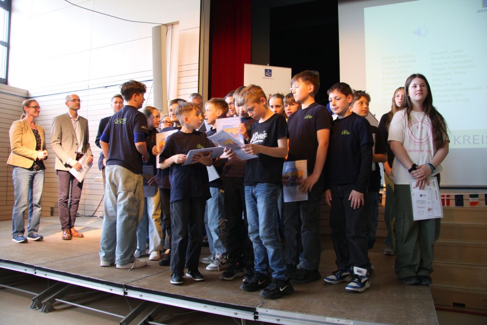 - Schülerinnen und Schüler aus den 10., 7. und 5. Klassen erhielten Orts- bzw. Kreispreise, darnter die Kl. 5b für ihren Europa-Rap,