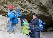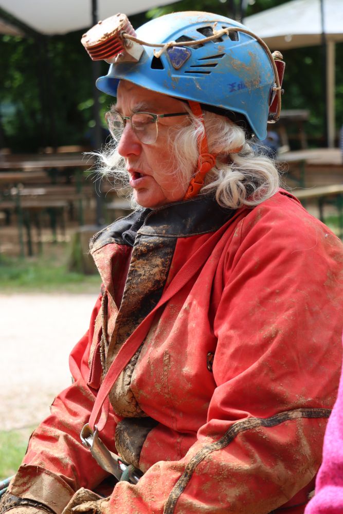 Mit großem Interesse, Mut und viel körperlichem Geschick folgten die Schülerinnen und Schüler der Höhlenforscherin in die Unterwelt und durften „schlufend“ (Schluf bezeichnet eine Engstelle in einer Höhle oder in einem Höhlensystem, die ein Mensch in der Regel nur auf dem Boden kriechend passieren kann), selbst durch die schmalsten Stellen des Höhlengangs zwängen. Für die erwachsenen Teilnehmer gab es zum Glück Ausweichrouten und so konnten auch sie sich schließlich bis zum hinteren Höhlenfenster durchschlagen.