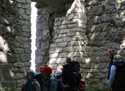 Am Lappertalbach mit seinen Kalktuffterrassen entlang ging es zunächst hinauf zur Lauterner Ölmühle, um dann in den leicht, aber stetig ansteigenden Weg der Bärenhalde einzubiegen. Die teilnehmende Schülerschaft, die sich aus 22 Parkschülern der Klassen 1 bis 8 zusammensetzte, war in diesem Streckenabschnitt tief in die Lösung eines von Geografielehrerin Sabrina Kolb erstellten Quizbüchleins versunken, in dem diverse Quiz- und Beobachtungsaufgaben zur Schulgemeinschaft, des Heimat- und Sachunterrichts und natürlich zur Schwäbischen Alb und ihren vielfältigen Karsterscheinungen zusammengestellt waren. Beim Heubacher Schützenhaus bog man dann von der breiten Schotterstraße ab, auf den abenteuerlichen Trampelpfad, der von den Einheimischen „Zick-Zack-Weg“ genannt wird. Die bunte Parkschul-Karawane schlängelte sich durch den dichten Buchenwald die letzten Höhenmeter hinauf zum Westsporn des Rosensteins, von wo man von der Ruine und vom Lärmfelsen hinab einen grandiosen Blick auf die heimatliche Landschaft und das üppige Frühjahrsgrün werfen konnte. Bei ungetrübten Sichtverhältnissen ließen sich im Westen sogar der Stuttgarter Fernsehturm und im Norden die bewaldeten Höhen des Schwäbisch-Fränkischen Waldes mit der „Hohen Brach“ (586 m ü. NHN) und seinem Fernmeldeturm als deren höchste Erhebung entdecken.