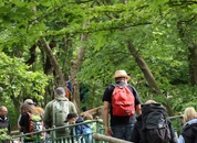 Eine stattliche Gruppe von annähernd 50 Teilnehmern der Parkschule Essingen (+ zwei Sibirische Huskies) traf sich am Samstagmorgen in Heubach-Lautern zur 1. Schüler-Eltern-Lehrer-Wanderexkursion. Nach einer kurzen Begrüßung machte man sich bei strahlendem Sonnenschein unter dem Motto „Hike the Rock“ auf den Weg zum Rosenstein hoch über Heubach. Die Organisatoren hatten den bequemen Weg an der Nordseite des markanten Kalkklotzes gewählt und so blieb den Wanderern genügend Atemluft, um sich im Gespräch über Stufen- und Klassengrenzen hinweg kennenzulernen und die herrliche Landschaft der Alb und die eindrucksvolle grüne Kulisse der Wiesen, Hecken und Wälder zu genießen.