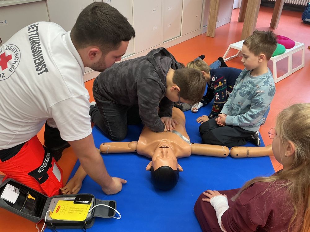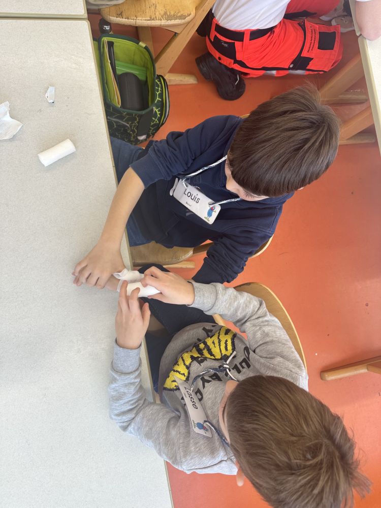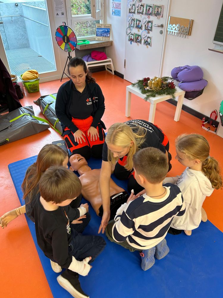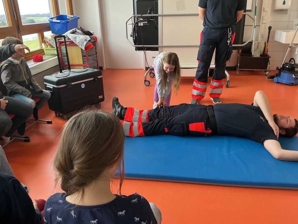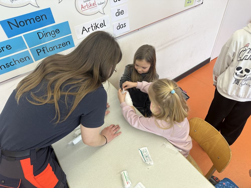 ab. Die angehenden Notfallsanitäter standen den Kindern dabei unterstützend zur Seite, erklärten einzelne Schritte und beantworteten zahlreiche Fragen.
