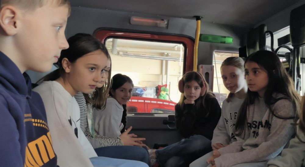 Außerdem erfuhren die Kinder, wie sie sich bei einem Brand und anderen Notfällen verhalten können, und es wurde ein Anruf bei der Notrufzentrale 112 durchgespielt.