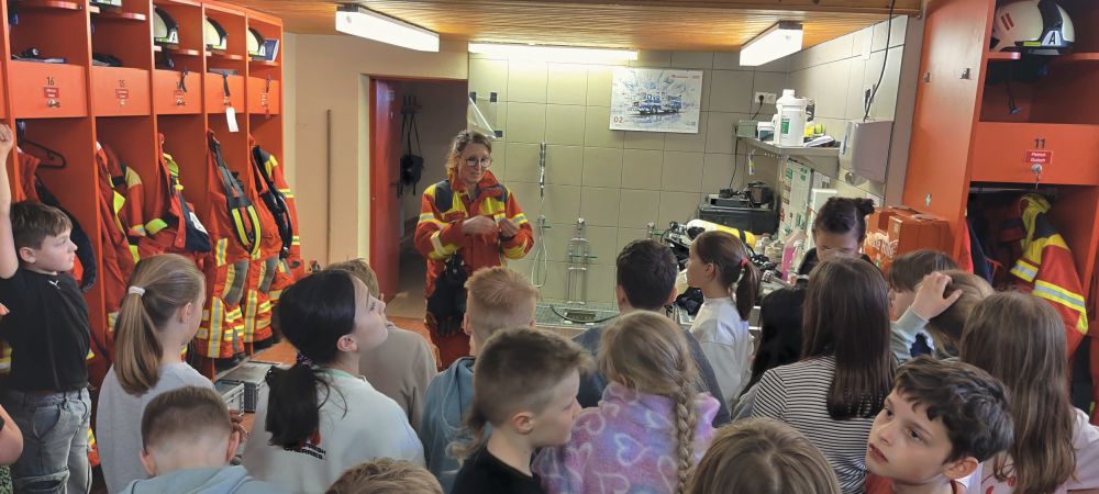 An zwei Dienstagnachmittagen statteten die Klassen 4a und 4b der Freiwilligen Feuerwehr in Essingen einen Besuch ab.