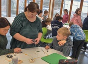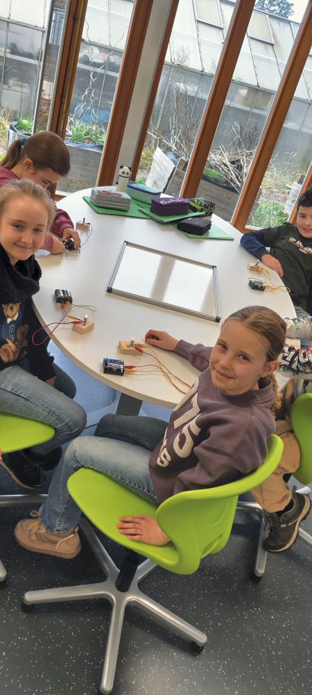 Eine Stromwerkstatt zum Tüfteln, Selbermachen und auch zum Mitmachen, wenn es darum geht, einen Stromkreis mit allen Kindern „nachzumachen“ - Alle waren voll dabei!