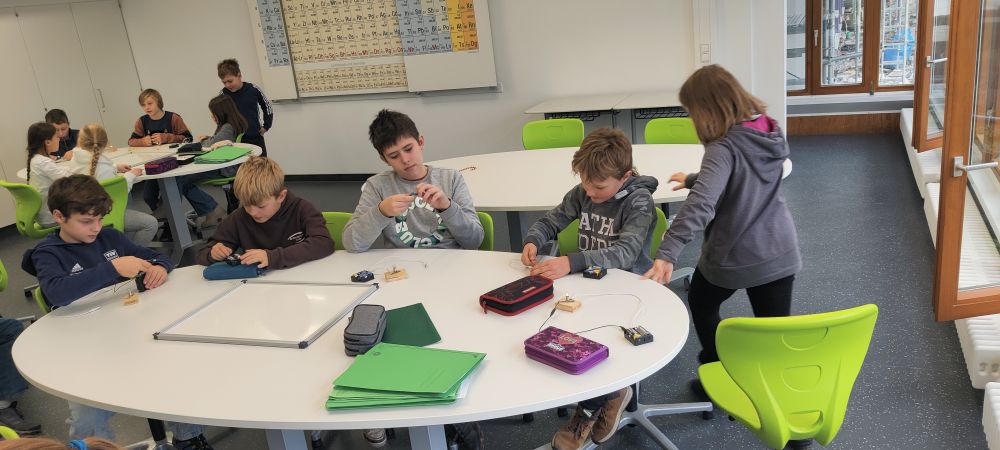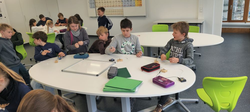 Wieder einmal war das Explorhino mit der „Stromwerksatt“ bei uns zu Besuch. Diesmal durften die Kinder der beiden vierten Klassen im neuen Fachraum für Biologie, Physik und Chemie mit Strom experimentieren. Sie durften verkabeln und verschalten. Die Frage war immer: Brennt das Lämpchen oder brennt es nicht - und wie funktioniert das eigentlich?