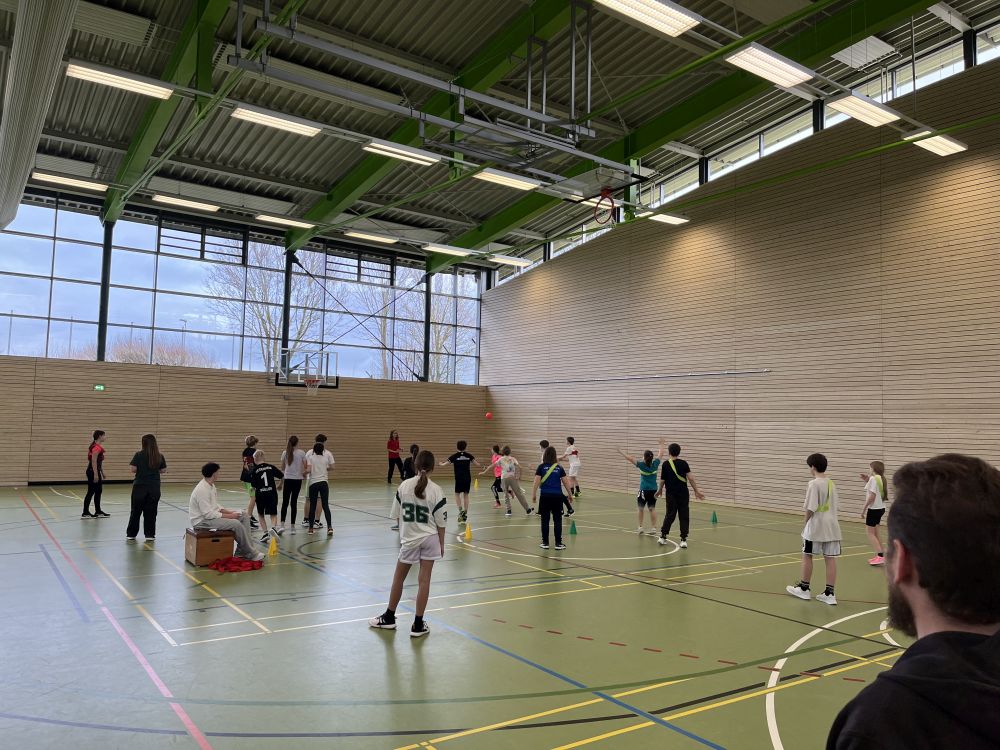 Am Mittwoch, den 11.02.2026, verwandelte sich die Schönbrunnenhalle in eine echte Wettkampfarena: Die Fachschaft Sport veranstaltete das traditionelle 2-Felderball-Turnier der Klassen 5 und 6. Insgesamt elf Mannschaften traten im Modus „Jeder gegen jeden“ an und lieferten sich spannende und faire Spiele.