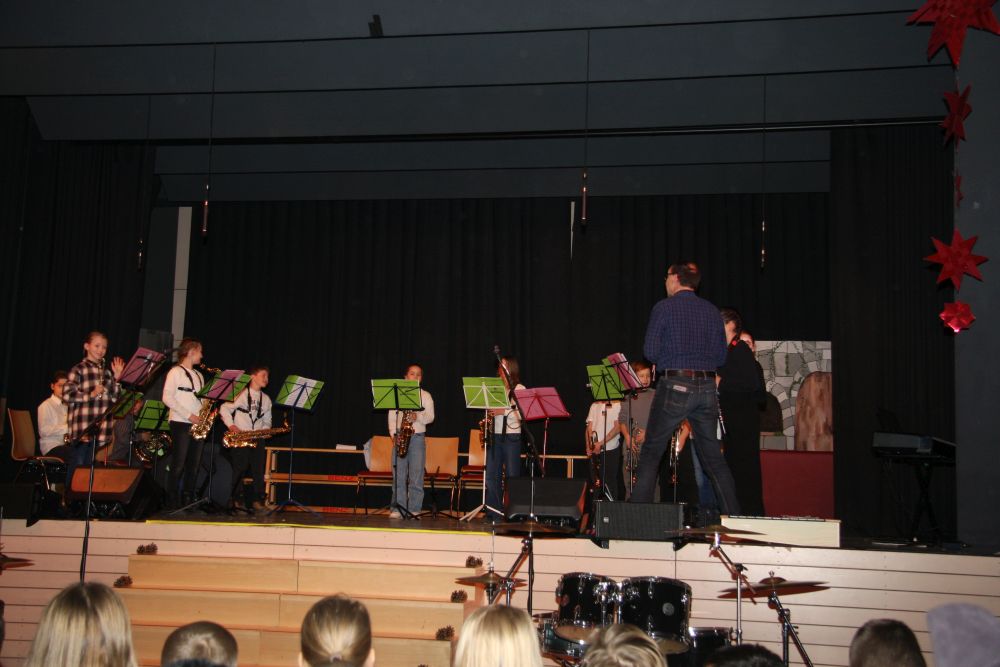Ein Höhepunkt jeder Weihnachtsfeier ist der Auftritt der Theater AG. Das eher nachdenkliche „Ein Engel auf Erden“ – Theaterstück zeigt die übergroße Erwartung an die Geschenke auf und stellt dem die eigentliche Weihnachtgeschichte in ihrer Schlichtheit entgegen. Mit großer Empathie spielten die Siebt- bis Zehntklässler unter Regie von Steffen Dilek.