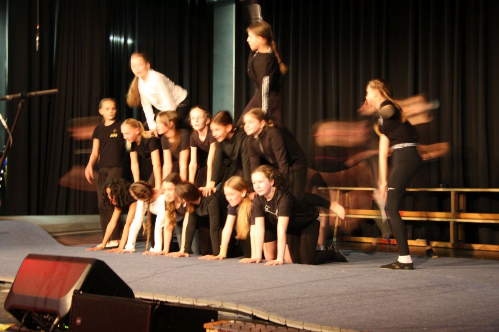 Die Akrobatik AG, einstudiert durch Maike Sauerborn, zeigte artistische Vielfalt und Köperbeherrschung. Die Schülerinnen hatten erkennbar Freude beim Stellen der verschiedenen Standbilder und bei ihren artistischen Turnübungen.