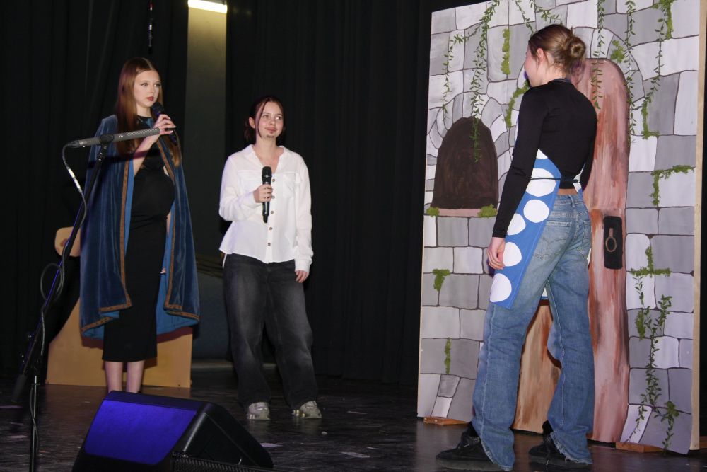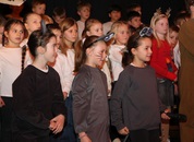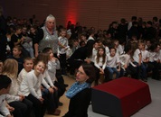 Das Gedicht „Die Weihnachtsmaus“ von James Krüss trugen die Patenklassen 1b und 6b vereint vor und weckten so manches Schmunzeln unter den Zuschauern. Die Klassenlehrerinnen Stefanie Göbelt und Marietta Fischer hatten mit ihrer Textauswahl eine glückliche Hand bewiesen.