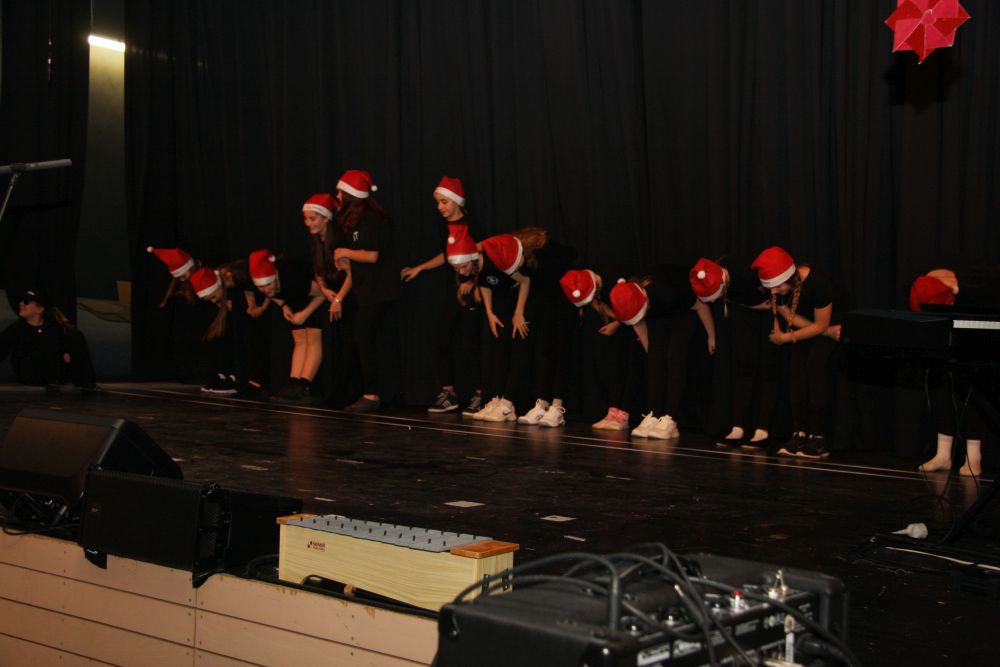 Darauf wurde es sportlich: Einen „Christmas Jump“, früher hätte man gesagt „Gummihupfe“, präsentierten die Mädchen der 7. Klassen mit ihrer Sportlehrerin Kristina Mayer und brachten die Zuschauermenge zum Mitklatschen.
