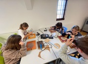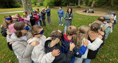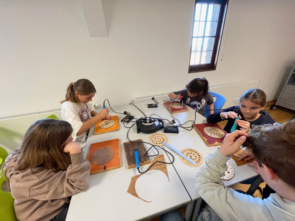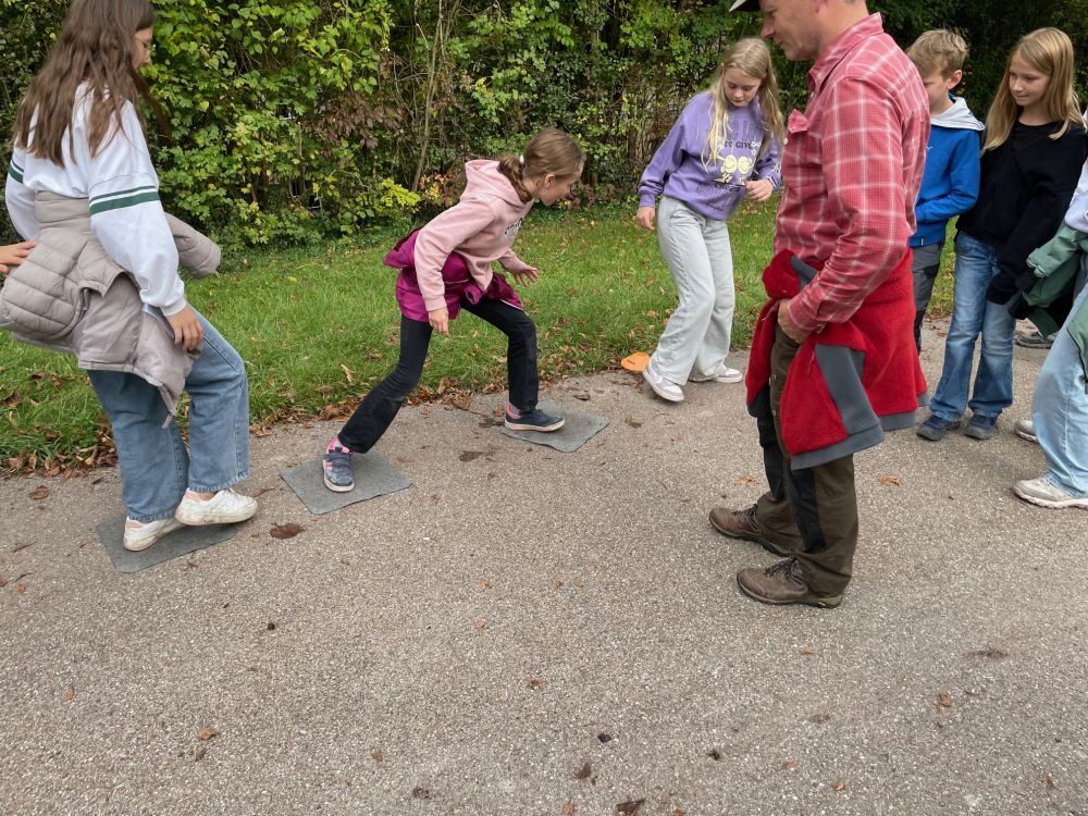 Bei tollem Wetter wurde gemeinsam gewandert, gespielt, gebastelt, geschmaust und zwischendurch auch gechillt. Der Höhepunkt des Trips waren sicherlich die vielfältigen teambildenden Einheiten mit den Erlebnispädagogen vom Therapiezentrum Larrieden und der Schulsozialarbeit. Als Grundkonzept dienten dabei die Zielvorgaben, wie Stärkung der Klassengemeinschaft, Kennenlernen der anderen, Vertrauensaufbau, Wir-Gefühl entwickeln. Daher wurden vor allem Interaktionen für das Kurzteamtraining gewählt, bei denen es darum geht, an „einem Strang zu ziehen“ und den Zusammenhalt spürbar erleben lassen. Unter Anleitung der professionellen Trainer machten die Kids bei abwechslungsreichen, kooperativen Spielformen wertvolle und nachhaltige Erfahrungen. Außerdem bastelten sich die jungen Gemeinschaftsschüler und -schülerinnen mittelalterliche Brettspiele und erkundeten das Stadtgebiet selbstständig in Kleindgruppen mittels einer Stadtrallye. Immer wieder galt es das Verhalten der Gruppe und seiner Mitglieder zu reflektieren.
