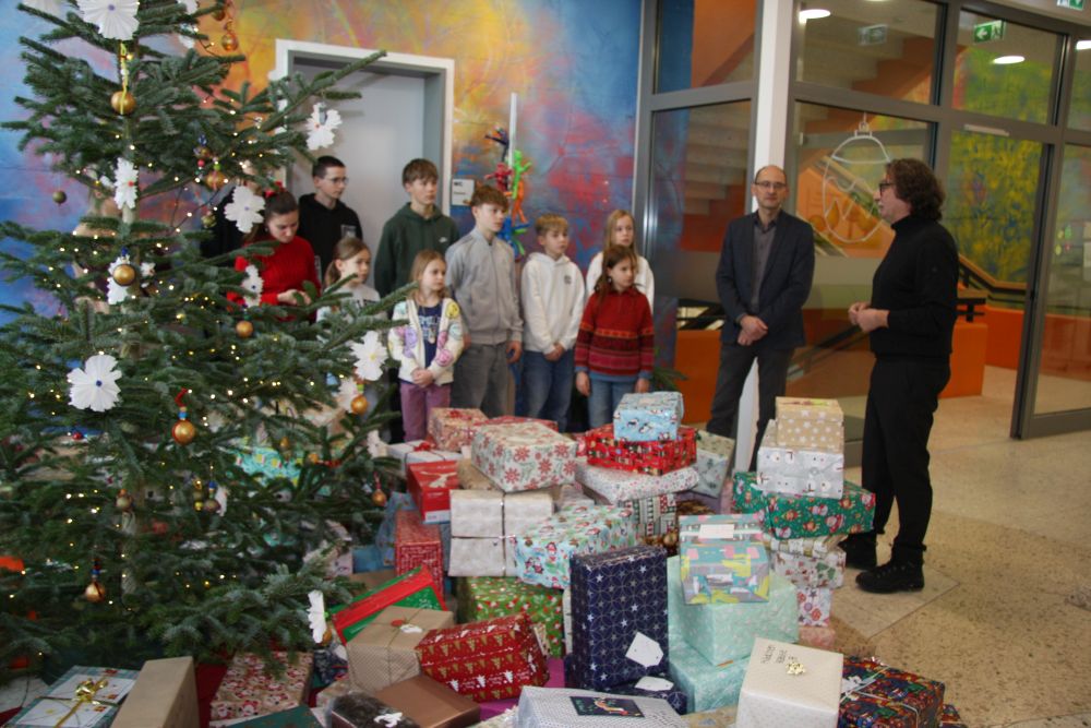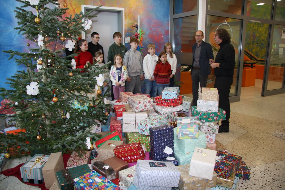 Am 17. Dezember war es soweit: Architekt Mathis Tröster, der langjährig die Modernisierungs- und Erweiterungsarbeiten an der Parkschule plant und begleitet, holte die 186 (!) Päckchen unter Weihnachtsbaum ab. Eltern, Schüler und Lehrer haben alle kräftig zu diesem Spendenerfolg beigetragen.