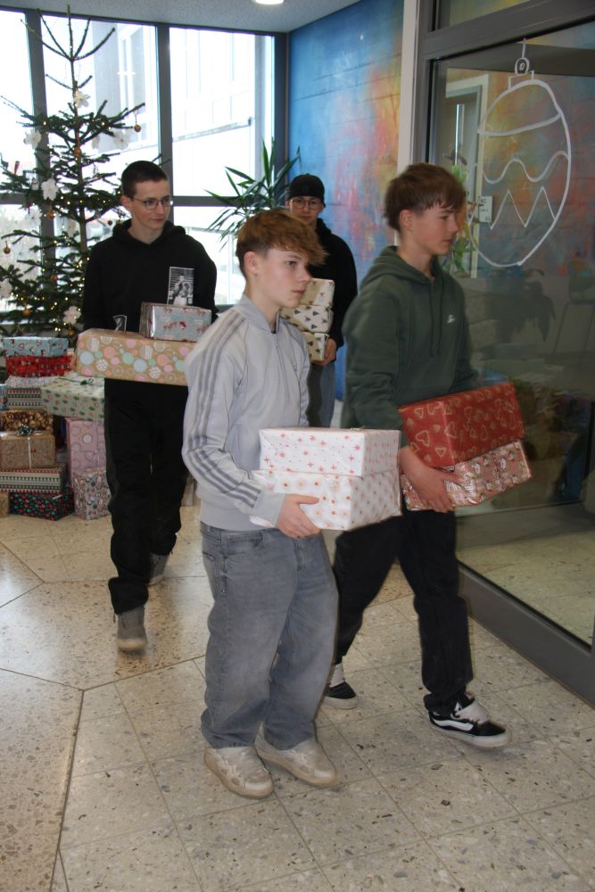 Die Päckchen werden in den Weihnachtsferien nach Rodna in Rumänien gebracht, damit sie rechtzeitig zum orthodoxen Weihnachtsfest (6. Januar) an die Kinder und Jugendlichen verteilt werden können. Mathis Tröster berichtete bei der Abholung kurz darüber und hob die Bedeutung dieser Aktion als ein Hoffnungszeichen hervor. Er selbst wird nach Rumänien mitfahren, wenn die Geschenke ausgeliefert werden, und dankte allen Beteiligten für diese großartige Aktion und wertvolle Unterstützung.