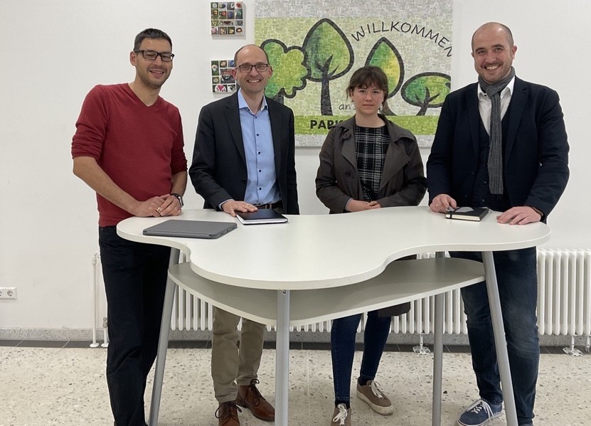 Wegen der anhaltenden Corona-Pandemie wurde die „offizielle“ Einsetzung unseres neuen Schulleiters Dr. Bernd Kinzl immer wieder verschoben und steht immer noch aus. Bevor nun die Schule zum erneuten „Lockdown“ ganz geschlossen wird, überreichte am Montag 14.12. eine kleine Abordnung aus dem Lehrerkollegium ihrem neuen Chef einen Willkommensgruß. Das „Willkommensbild“ aus dem Eingangsbereich der Parkschule wurde modifiziert und ziert nun in den kommenden Jahren das Rektorat: Herzliche Willkommen an der Parkschule Essingen, Herr Dr.Kinzl!