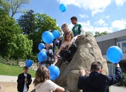 Luftballonstart - Preisträger der Parkschule auf Kreisebene - Landespreisträger - Landespreisträgerinnen mit Bundesnominierung Bellienne Brendle und Norah Neuberger - Bundespreis für Eliah Oestreich, vordere Reihe ganz rechts.