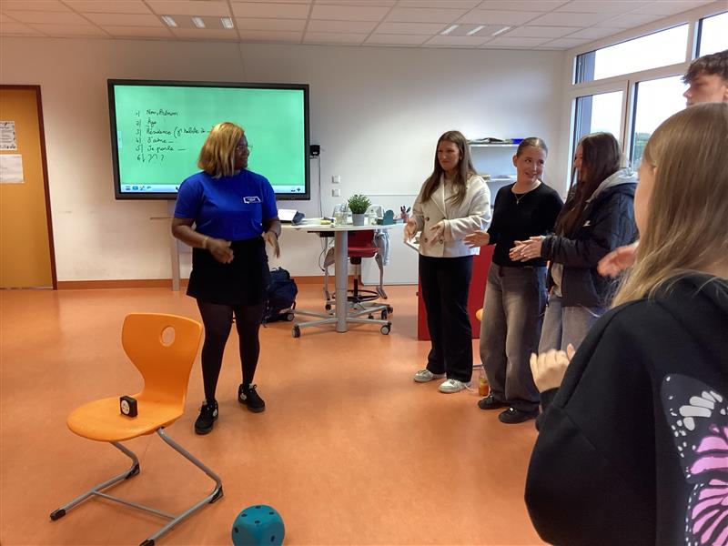 Den Auftakt bildeten die Klassen 9 und 10, die gemeinsam mit ihren Lehrerinnen Frau Engelhardt und Frau Ziller eine spannende Unterrichtsstunde erlebten. Nach einer unterhaltsamen Kennenlernrunde mit französischer Musik folgte ein Quiz, das den Schülern wertvolle Einblicke in das Thema Francophonie bot.