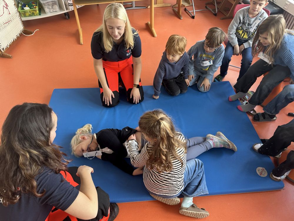 ab. Die angehenden Notfallsanitäter standen den Kindern dabei unterstützend zur Seite, erklärten einzelne Schritte und beantworteten zahlreiche Fragen.