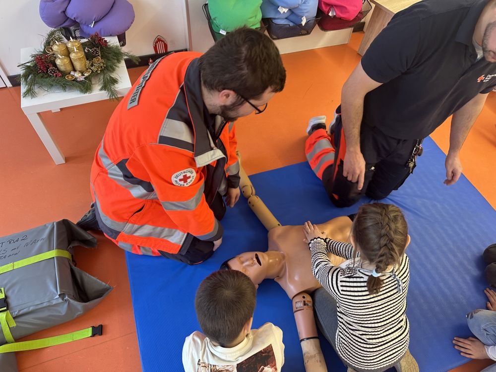 Für unsere Schülerinnen und Schüler war es ein spannender und lehrreicher Tag, an dem sie auf spielerische Weise wichtige Fähigkeiten für den Notfall erwerben konnten. Wir bedanken uns herzlich bei der DRK-Landesschule Ellwangen für den Besuch und die wertvolle Zusammenarbeit.