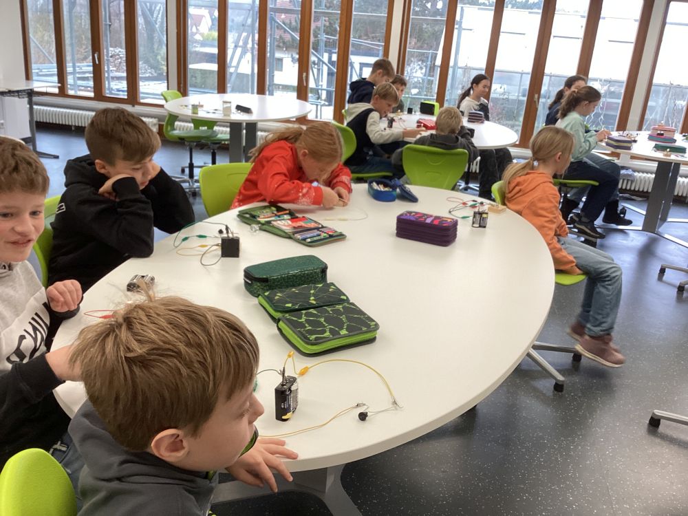 Kl. 4a+4b: Exlorhino der Hochschule Aalen mit "Stromwerkstatt" im Unterricht der 4. Klassen