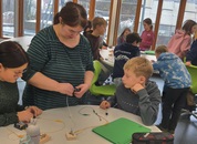 Eine Stromwerkstatt zum Tüfteln, Selbermachen und auch zum Mitmachen, wenn es darum geht, einen Stromkreis mit allen Kindern „nachzumachen“ - Alle waren voll dabei!