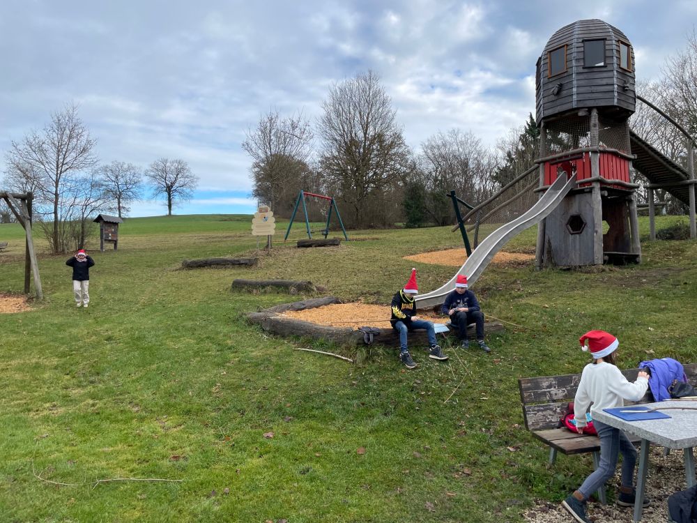 Für die letzte Wanderung der Geopark-LG vor den Feiertagen war eigentlich noch einmal eine größere Tour rund um Essingen angekündigt. Um trotz der frühlingshaften Temperaturen wenigstens ein kleines bisschen Winterstimmung aufkommen zu lassen, hatten sich die fleißigen Wanderer der Parkschule stilecht als Weihnachtswichtel verkleidet.