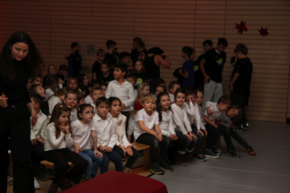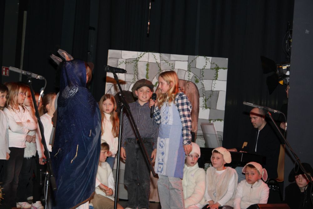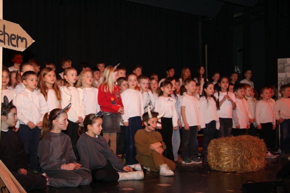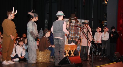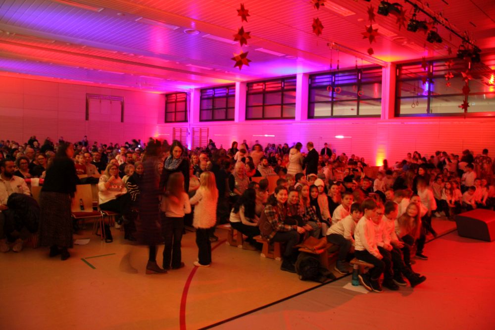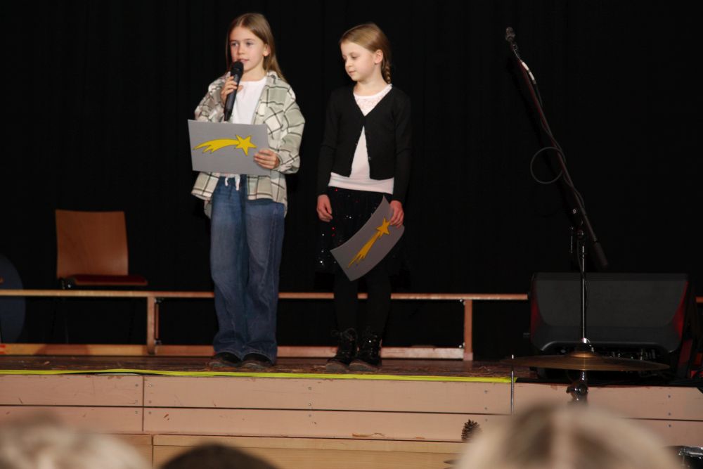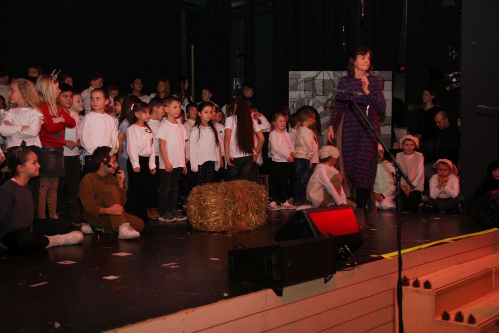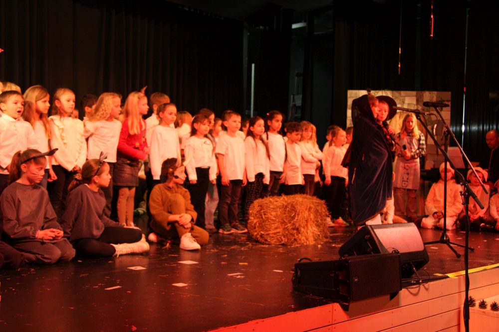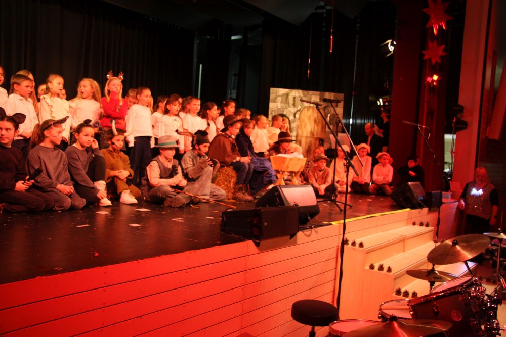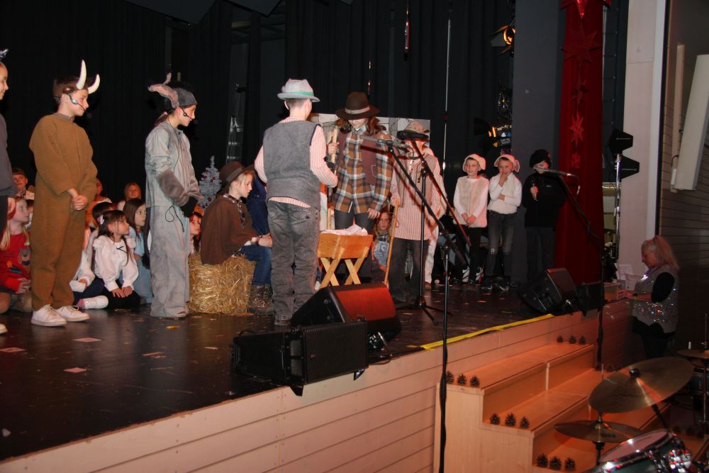 Ausschnitte aus dem Kindermusical „Spezialauftrag für einen Esel“ präsentierten alle ersten und vierten Klassen, intensiv einstudiert von ihren Klassenlehrerinnen Hiller, Göbelt, Adams, Herzog und Paul, sowie Johannes Fischer aus der Sekundarstufe am E-Piano. Das Weihnachtsgeschehen um Jesus, Maria und Josef wird aus der Sicht des Esels Joschi dargestellt.