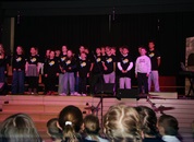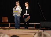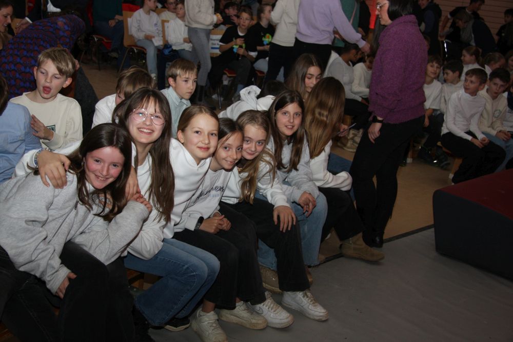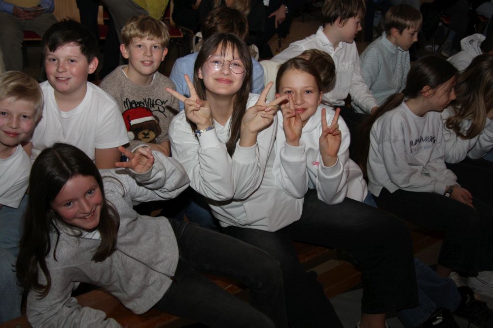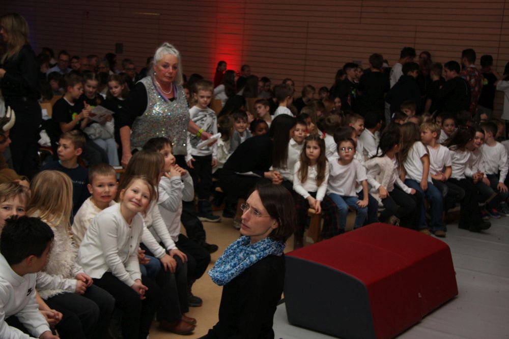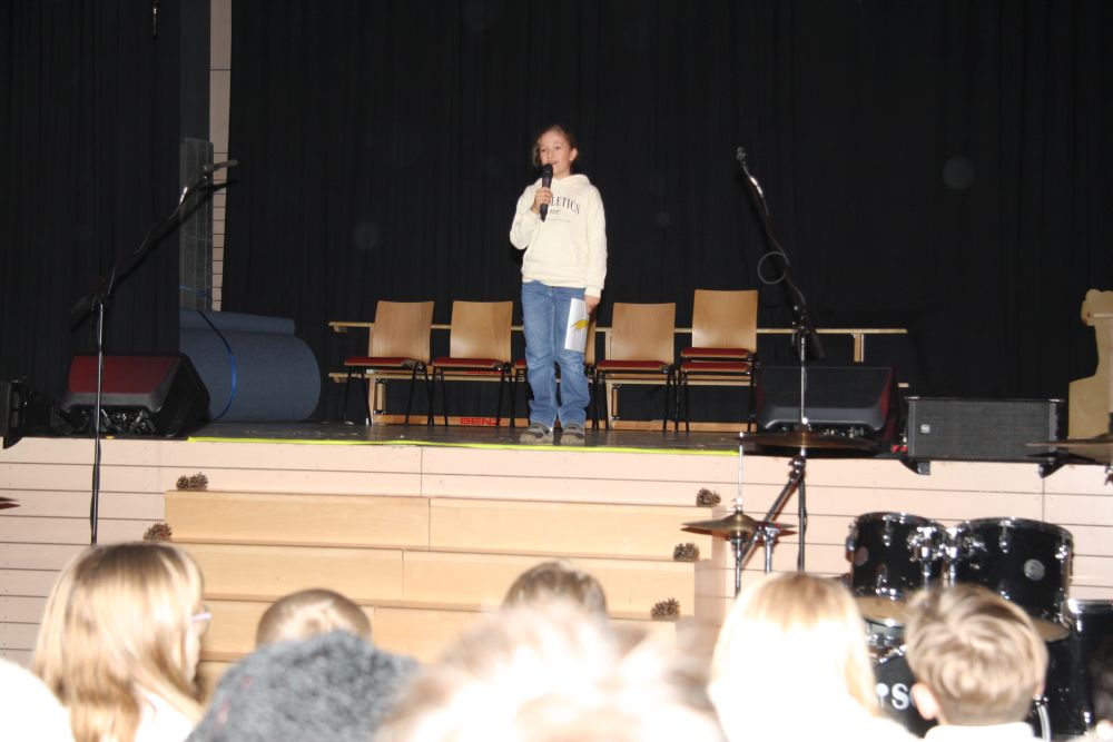 Das Gedicht „Die Weihnachtsmaus“ von James Krüss trugen die Patenklassen 1b und 6b vereint vor und weckten so manches Schmunzeln unter den Zuschauern. Die Klassenlehrerinnen Stefanie Göbelt und Marietta Fischer hatten mit ihrer Textauswahl eine glückliche Hand bewiesen.