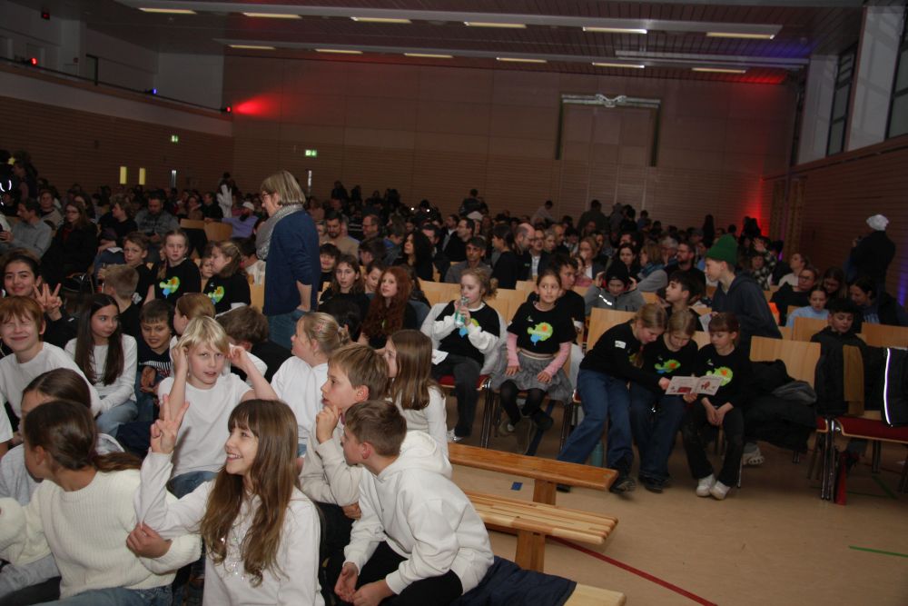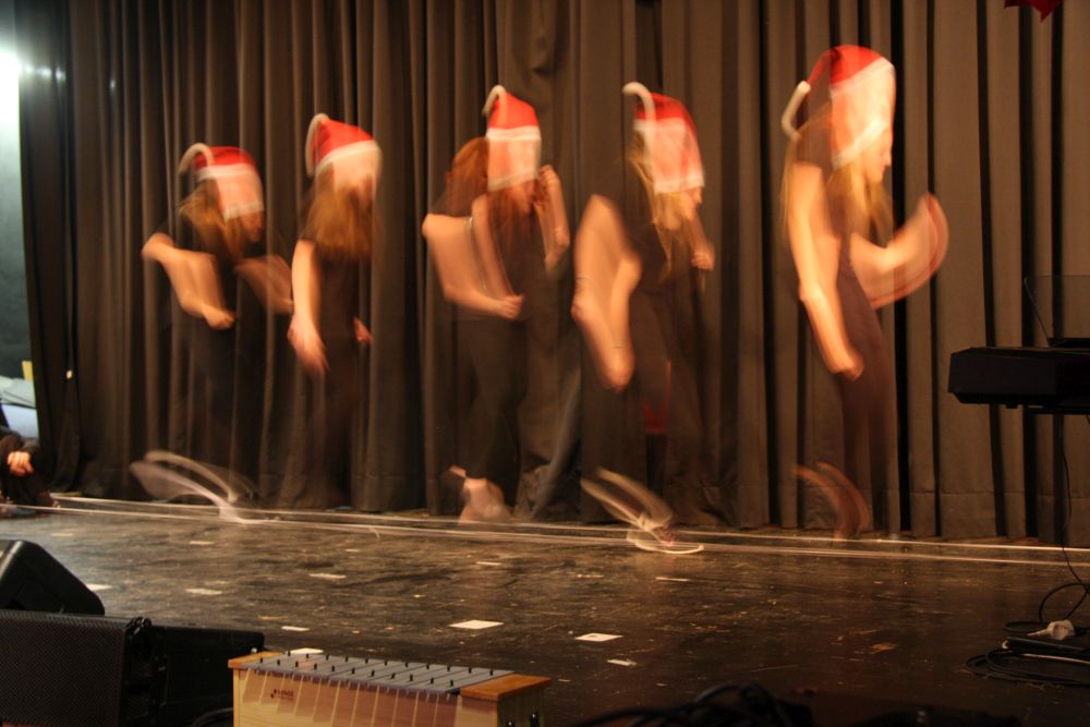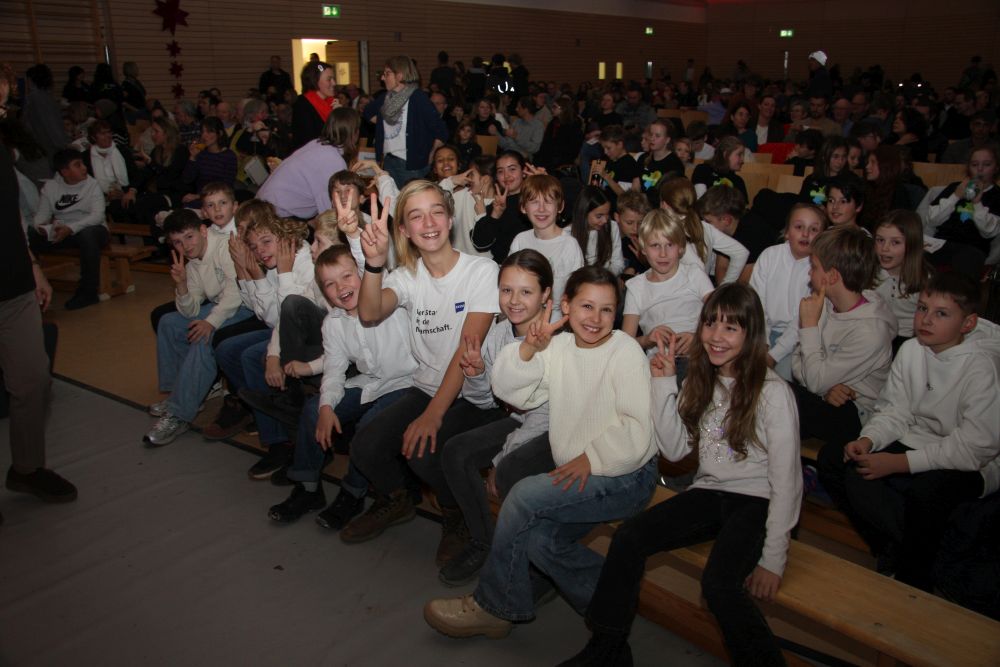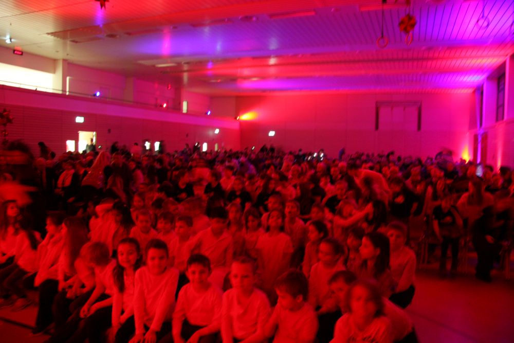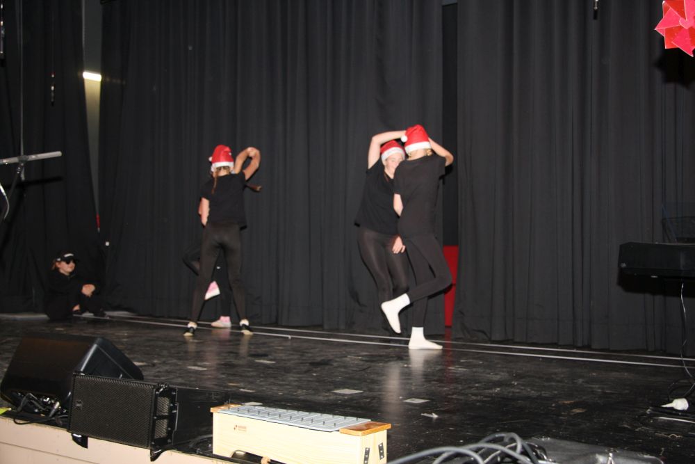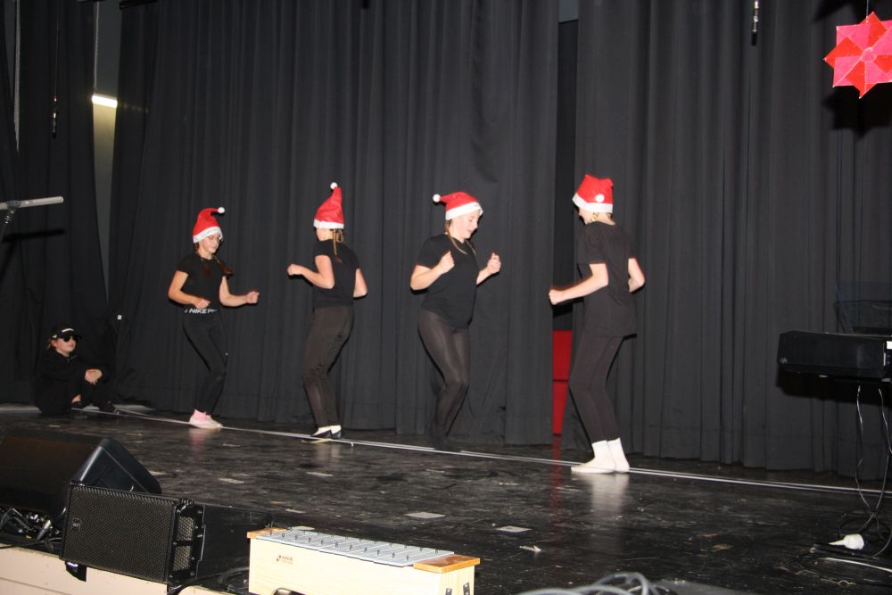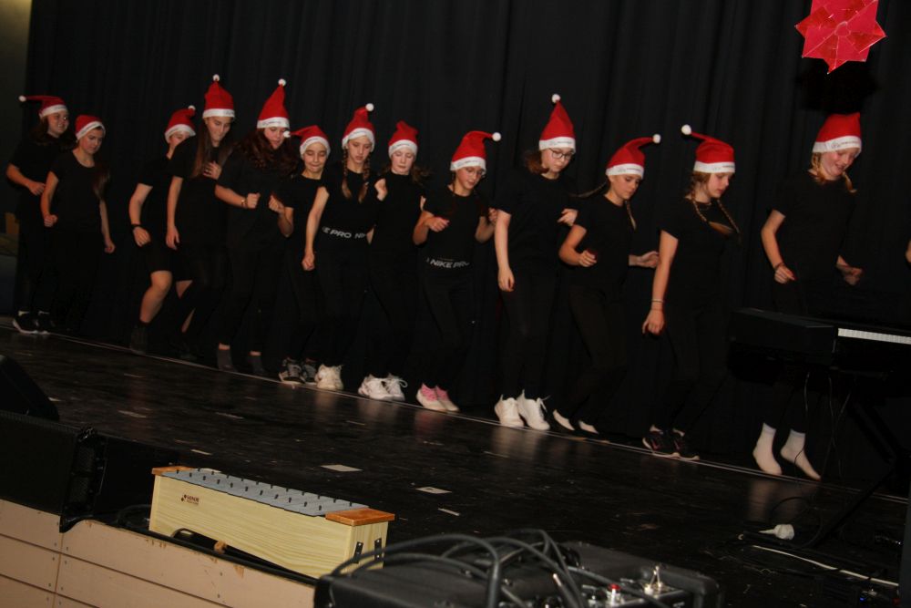 Darauf wurde es sportlich: Einen „Christmas Jump“, früher hätte man gesagt „Gummihupfe“, präsentierten die Mädchen der 7. Klassen mit ihrer Sportlehrerin Kristina Mayer und brachten die Zuschauermenge zum Mitklatschen.