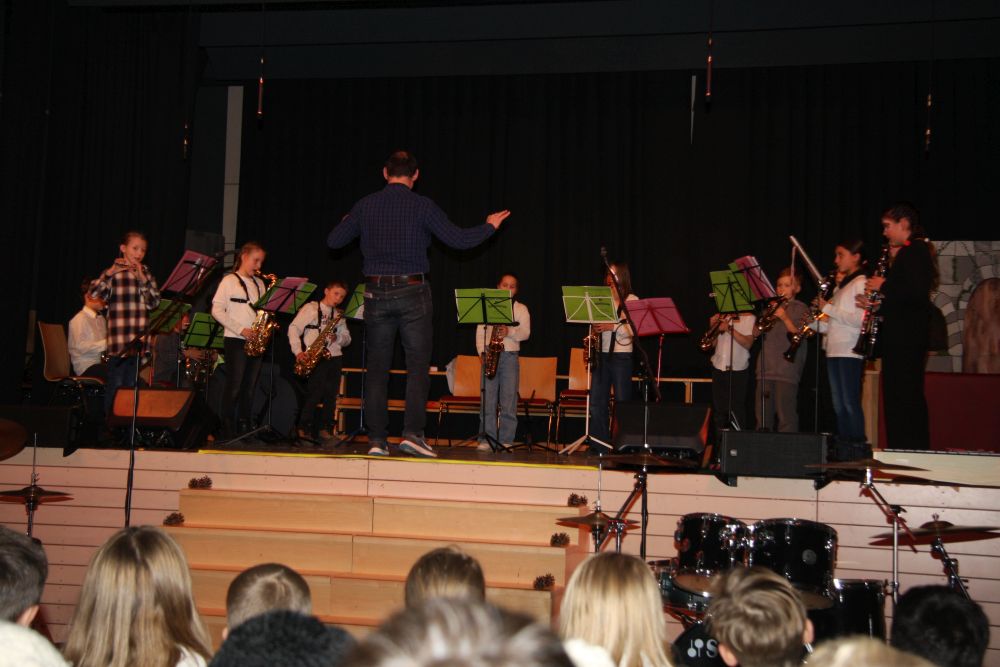 Den Auftakt machte mit bekannten Weihnachtsmelodien das Grundschulorchester der vierten Klassen, eine bewährte Kooperation mit dem Musikverein Essingen unter der Leitung von Marc Pöthig. Erstaunlich, welche Fertigkeit die jungen Musiker in gut einem Jahr auf ihren Instrumenten erlangten.