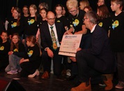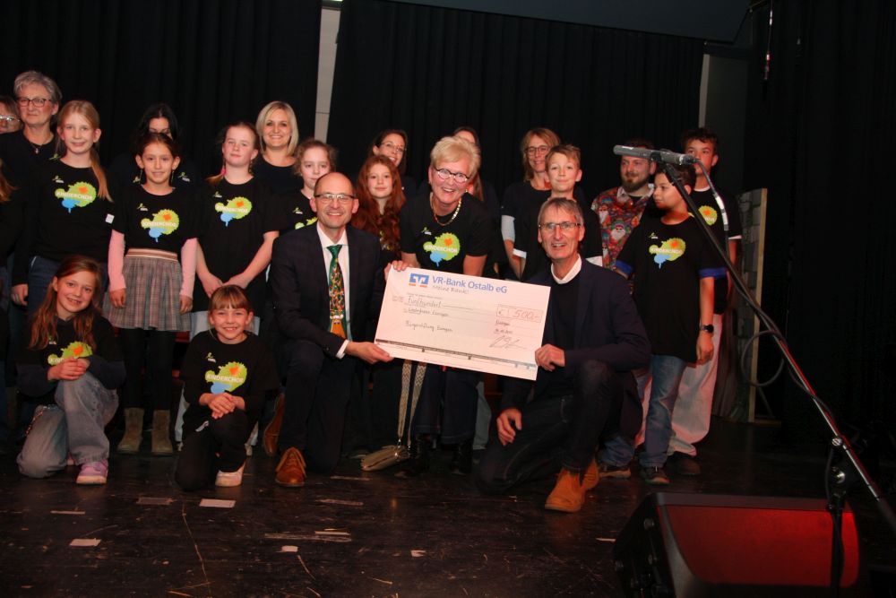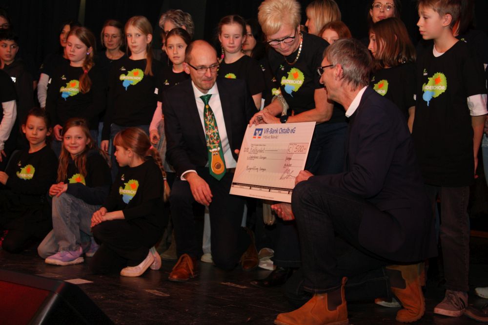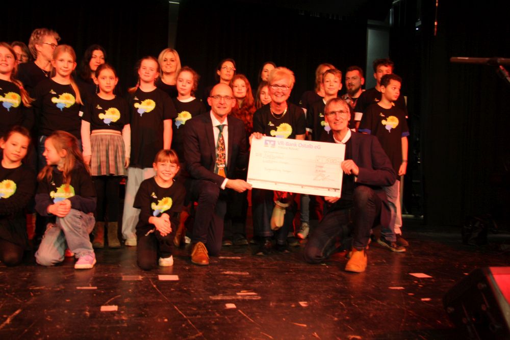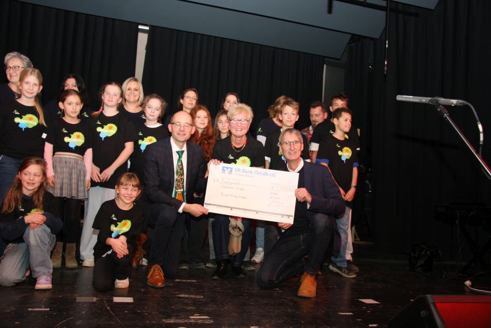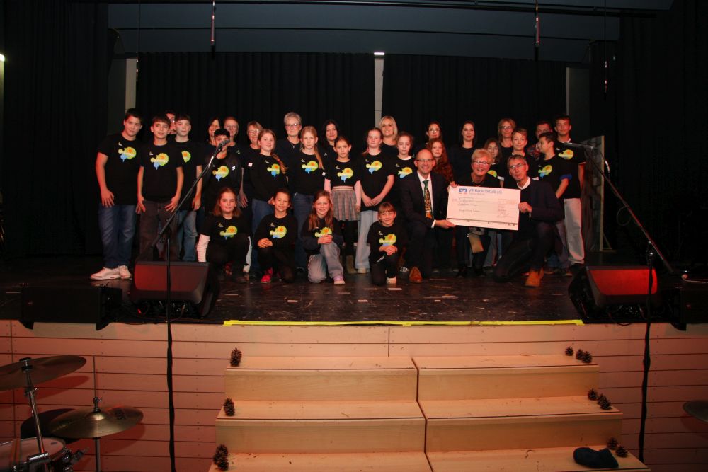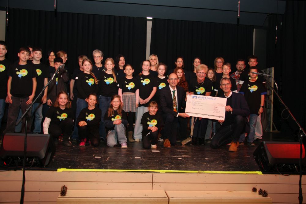 Zwischen beiden Feiern überreichte Ralf Schiehlen von der Essinger Bürgerstiftung einen Scheck über 500 € an den Liederkranz zur Unterstützung der Arbeit des Kinderchores.