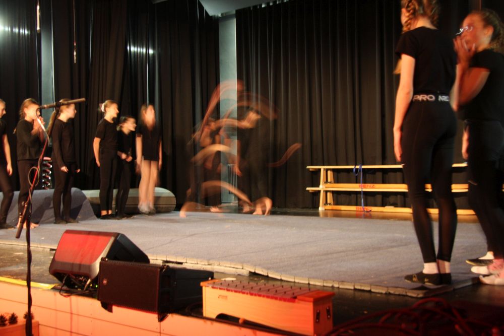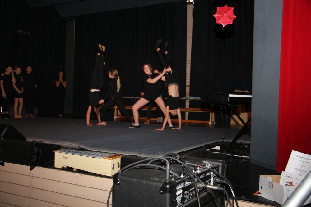 Die Akrobatik AG, einstudiert durch Maike Sauerborn, zeigte artistische Vielfalt und Köperbeherrschung. Die Schülerinnen hatten erkennbar Freude beim Stellen der verschiedenen Standbilder und bei ihren artistischen Turnübungen.